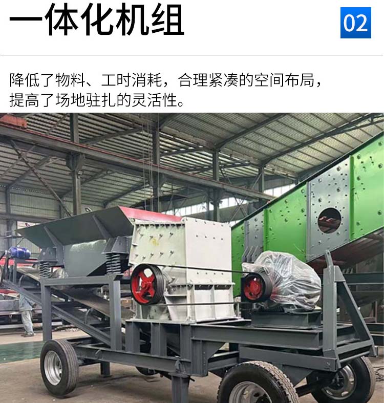 移動式破碎機具有輕巧合理的結構設計及較好的破碎性能。整機由破碎機、給料機、進料斗、內置膠帶機、驅動和控制系統等機構安裝于移動式底盤上而組成。該破碎設備的推出消除了破碎時繁瑣的鋼架結構,地基的建設,節省了大量的時間。 移動 破碎機 ,能夠對物料進行現場破碎,免除了物料運離現場再破碎、處理的中間環節。移