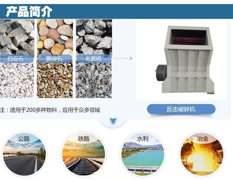 反擊式破碎機采用了特別的結(jié)構(gòu)設(shè)計,成品呈立方體,粒型相當好,能破碎抗壓強度不超過350MPa的各種物料如花崗巖、石灰石等,廣泛應(yīng)用于各種礦石破碎、鐵路、高速公路、建筑等行業(yè)。
