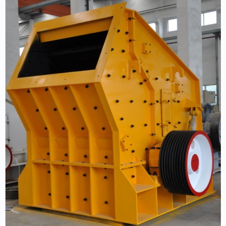反擊式破碎機在破碎過程中,物料在設定的流道內沿一、二反擊板經一定時間和一定長度的反復沖擊路線使物料破碎,下方的均整篦板起確定出料粒度大小的作用。物料的破碎是在板錘沖擊下進行,隨后是在拋擊到反擊板上進一步破碎,同時料塊群在空中互相撞擊而得到粉碎。